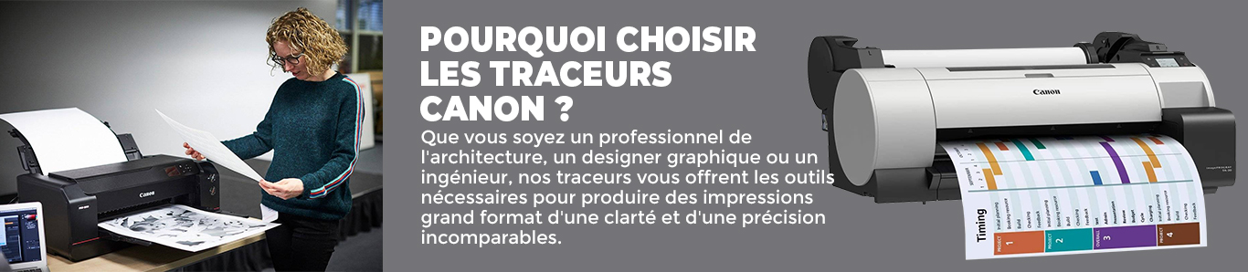Explorez de nouvelles dimensions de la créativité et de la précision avec les traceurs Canon. Conçus pour les professionnels exigeants des domaines de l'architecture, de l'ingénierie, de la photographie et des arts graphiques, les traceurs Canon allient technologie de pointe, qualité d'impression exceptionnelle et facilité d'utilisation. Faites passer vos projets au niveau supérieur avec Canon.